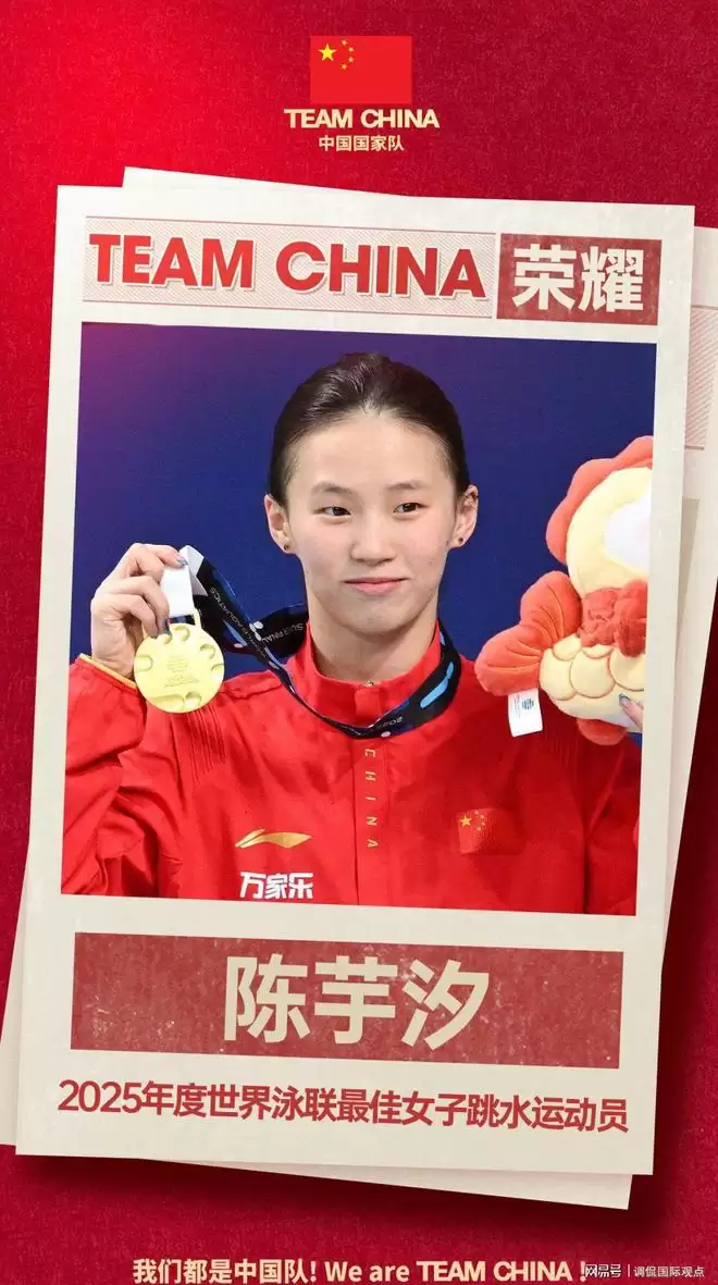 她在2025年12月份的时候,就获得了世界泳联最佳女子跳水运动员,并且还入选了2025年的国际十佳运动员。