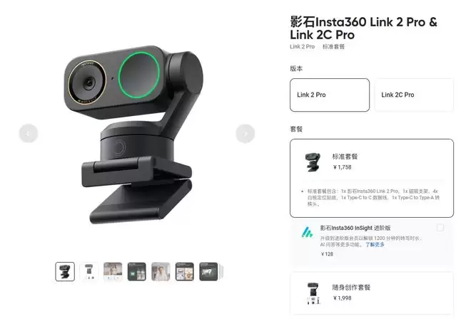官方发布信息显示,Insta360 Link 2 Pro与Link 2C Pro已正式登陆影石官方商城及主流电商平台,首发标准套装的定价分别为1758元与1398元。