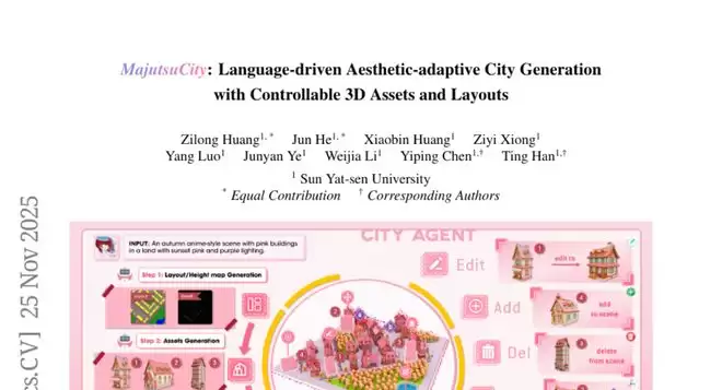 这项由中山大学的黄子隆、何俊、黄晓斌、熊子艺、罗阳、叶俊岩、李维嘉、陈益平和韩婷等学者组成的研究团队发表于2025年11月的研究成果,开发出了名为MajutsuCity的革命性城市生成系统。有兴趣深