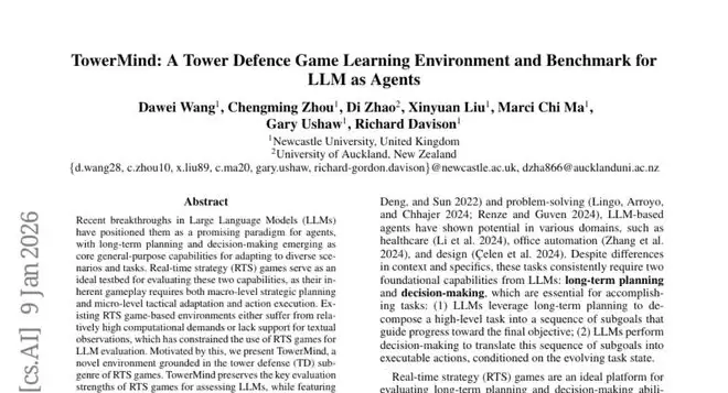 这项由纽卡斯尔大学和奥克兰大学联合完成的研究发表于2026年的AAAI会议(Association for the Advancement of Artificial Intelligence),论文编号为arXiv:2601.05899v1。研究团队开发了一个名为TowerMind的全新AI测试平台,专门用来评估大型语言模型(也就是ChatGPT那类AI)是否具备像人类一样制定长期策略和做出明智决策的能力。