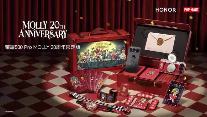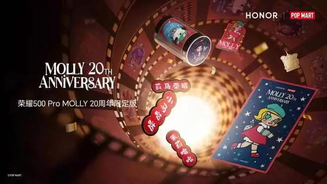 1 月 14 日,荣耀正式宣布携手泡泡玛特旗下经典潮流 IP MOLLY,共同打造荣耀 500 Pro MOLLY 20 周年限定版联名产品。这一合作不仅是科技与潮玩的深度融合,更被业界视为“手机圈首个官版痛机”的真机首秀,迅速引发科技与潮玩领域的共同关注。
