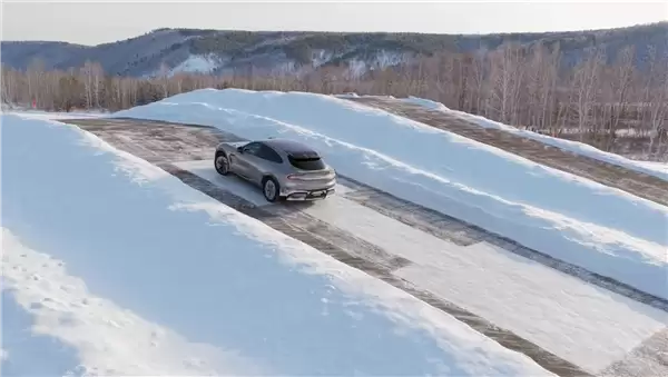 此次测试设定了极具挑战性的路面环境:冰面摩擦系数仅为干燥沥青路面的约1/10,同时仅允许左后轮具备有效抓地力。这一设定对车辆四驱分配、动力控制及车身稳定系统提出了严苛考验。