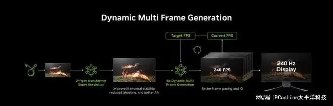 除此之外,NVIDIA DLSS 4.5技术还引入动态多帧生成功能,该系统不会采用固定的帧率倍数,而会在不同的帧率倍数之间自动切换,以便在帧率、画质和响应速度之间达到完美平衡!