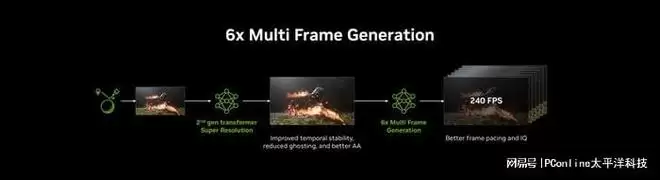 在 GeForce RTX 50系列GPU上,从4倍多帧生成提升至6倍多帧生成,可将采用路径追踪技术的游戏在4K分辨率下的帧率提升高达35%。将这种高效的帧生成模型与 NVIDIA Reflex低延迟技术相结合,意味着DLSS 4.5能以极低的响应延迟影响来生成这些额外的帧。