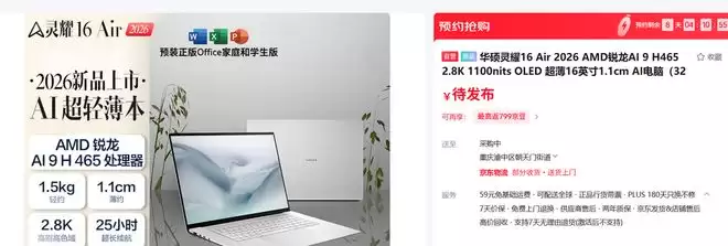 即将推出的华硕灵耀16 Air 2026
