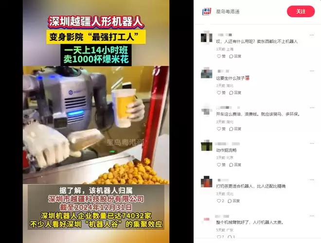 在机器人正式进入职场的消息传开后,互联网上迎来了不少恐慌的声音:“哎,人还有什么用呢?卖东西都比不上机器人”“科技的进步是为了代替人做一些脏高危工作,而不是无人驾驶出租车、卖爆米花,占用人的工作”“如果机器可以代替人类,很多老板都会宁愿买机器人也不会雇人了”……这些言论如同涟漪般在社交媒体上迅速扩散,引发了广泛的讨论。
