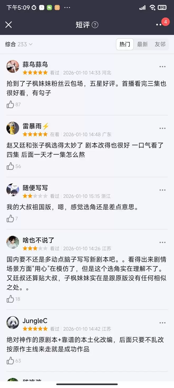 批评声音则集中在“本土化不足”的问题上,许多桥段直接照搬韩版,缺乏中国现实基础。例如,养老院允许两个月不缴费、女主带着瘫痪老人逃跑的情节,被指不符合中国实际情况。上市公司高管因舅舅家庭问题而陷入经济困境的设定,也被认为过于“韩剧化”。
