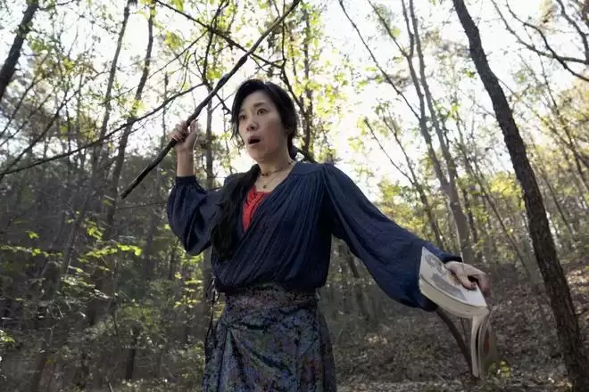 从这个意义上说,对我来说表达得最好的场景在影片后半部分:由孙艺珍饰演的美莉正在自家的院子里,在一棵苹果树下挖掘,因为她想知道那里藏着什么。与此同时,万秀正在由朴熙顺饰演的善出家里挖掘,因为他准备把他埋在那里。