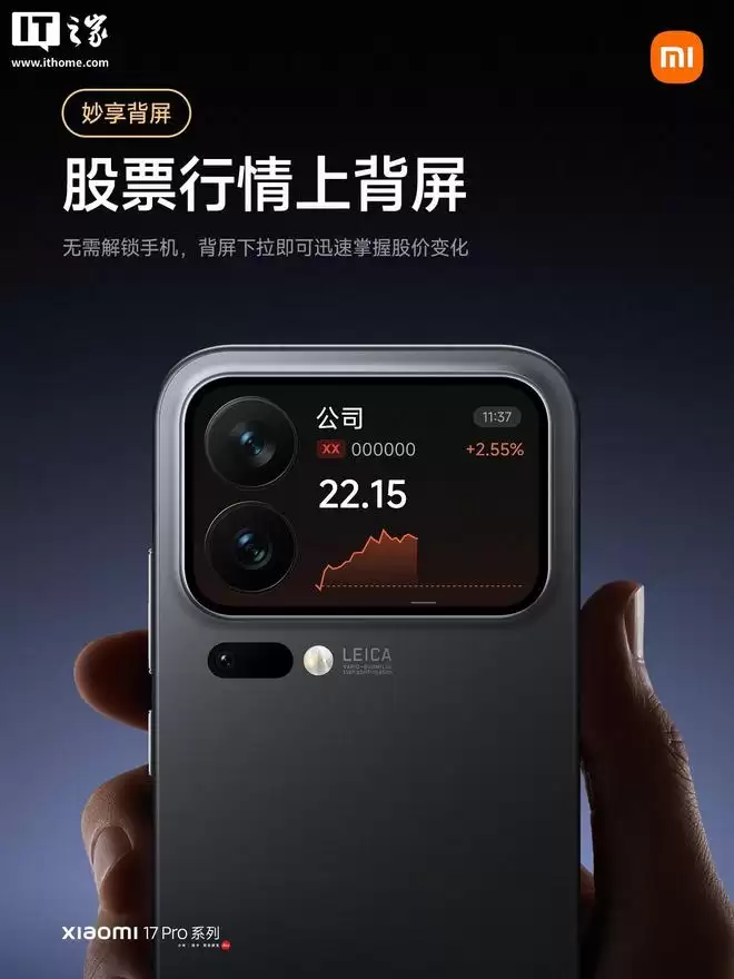 需要注意的是,该功能正在陆续推送更新中,用户需将系统版本升级至 OS 3.0.40.0 或更高版本方可体验。此外,小米17 Pro系列手机的背屏还同步新增了“背屏录像提词器”和“背屏股票行情”等实用功能。背屏录像提词器的使用路径为:从背屏右滑进入「相机」 > 切换到「录像」模式 > 下拉界面 > 即可开启「提词器」。