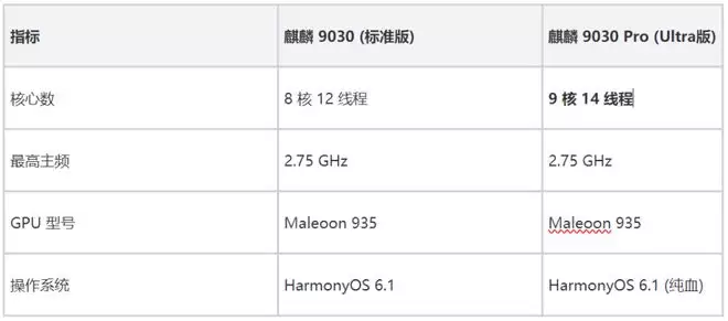 麒麟9030系列芯片预测规格: