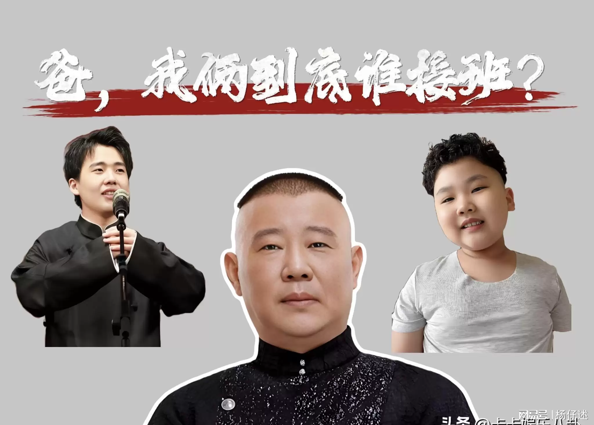 3. 郭德纲小儿子郭汾阳要入场说相声了。郭德纲透露,郭汾阳会和“腾字科”学员一起上课学习相声。今年郭汾阳11岁,目前还是小学,如果真的开始说相声,这怕是老郭家“学历不过初中”的魔咒难以打破了。不少网友猜测:老郭这是要开始培养接班人了吗?现在下手是有点早啊!