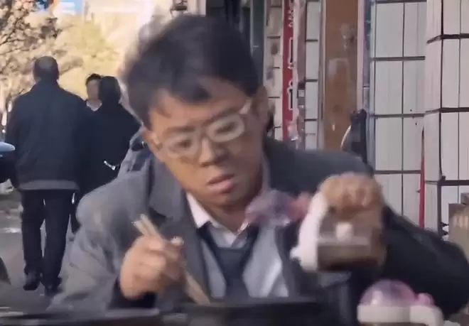 准备吃面时,他先挑了一筷子面凑到嘴边,刚碰到嘴唇就“嗖”地缩了回来,眉头还皱了一下,明眼人都能看出来,这是想表现面很烫。