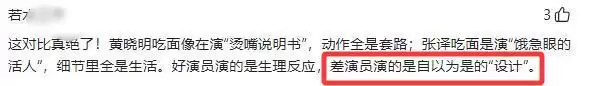 有网友吐槽“黄晓明吃面像在念‘烫嘴说明书’,动作全是按剧本走的套路,看着特别出戏”。