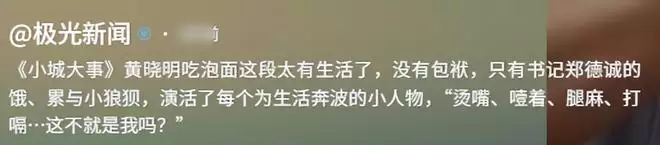 在《小城大事》更新剧集之后,黄晓明饰演的月海镇书记郑德诚吃面这段,直接冲上了热议榜单。