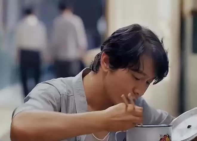 剧情里郑德诚赶去县委汇报工作,忙得连饭都没吃,只能在办公室泡了碗方便面应急。