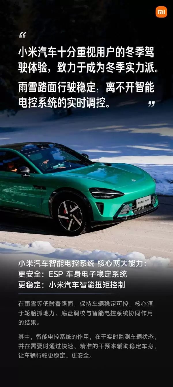 冬季行车安全始终是汽车行业关注的焦点,小米汽车近日通过最新渠道详细介绍了其在极端天气下的安全技术突破。针对雨雪路面易打滑、操控难度大的问题,小米汽车重点展示了其自主研发的智能电控系统,通过软硬件协同优化为驾驶者提供更稳定的行驶体验。