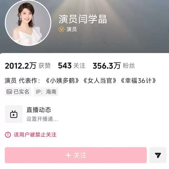 这位曾在荧幕上饰演“国民儿媳”的演员,多个平台的视频账号突然被禁止关注。