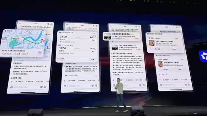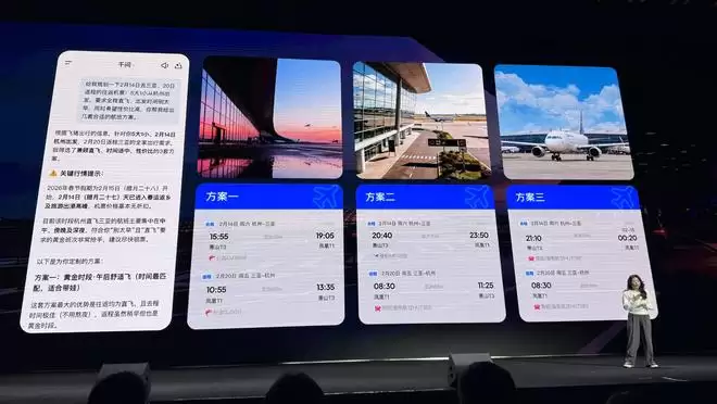 一个用户在春节期间要规划旅游计划,他可以在千问App中完成查询、订票等一系列操作。千问会根据用户的具体情况,推荐多套出行方案。这体现了强大的跨应用协同能力。