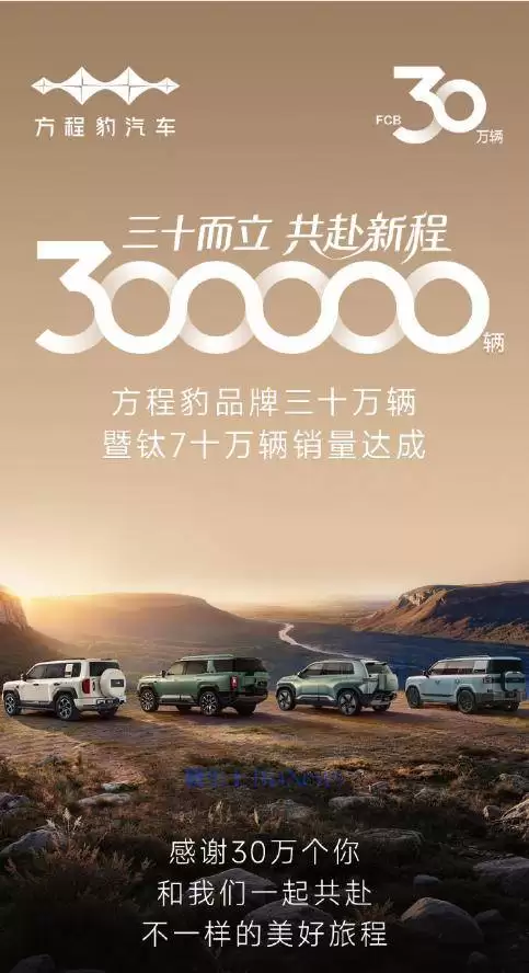 方程豹汽车交付超30万辆,钇为7销量突破十万辆