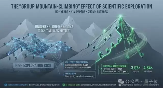 这种“群体登山”模式,虽能加速对已知问题的解决,却也在无形中固化了科学探索的路径,系统性地削弱了科学家向“未知山峰”探索的广度。