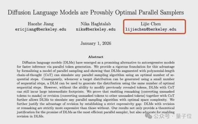 与此同时,陈立杰近期参与的最新研究方向也十分“当下”,聚焦于扩散语言模型(Diffusion Language Models),紧跟当前生成模型的重要演进路线。