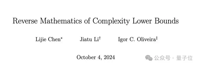 2024年,陈立杰一篇名为《复杂性下界的逆向数学》更是给困扰学界近 50 年的一类计算复杂性难题带来新思路。