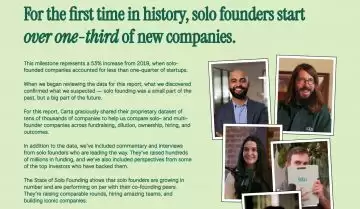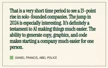 根据 Carta 2025 年的最新数据,超过三分之一的新公司是由单人创始人创办的。