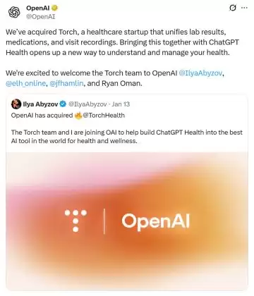 就在宣布收购 Torch 前几天,OpenAI 刚推出了面向普通用户的 ChatGPT Health 功能。