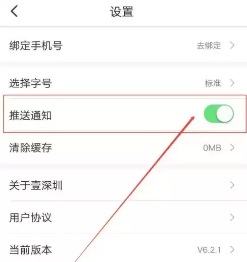在设置页面里,您会看到“推送通知”的开关,点开它就能完成设置了。具体位置可参考下图。
