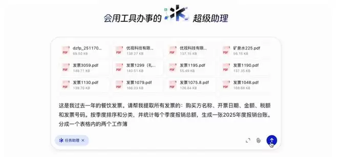 比如针对财务人员头疼的报销难题,千问现在支持一次性处理上百张格式不一的电子发票。用户只需将文件批量拖入,指令系统生成年度报销台账,AI便能自动抓取日期、金额、购买方等关键字段,并在几分钟内交付一份结构严密的Excel报表。
