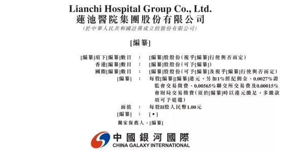 1月15日消息,莲池医院集团股份有限公司(以下简称“莲池医院”)已于1月13日向港交所递交招股书,计划在香港主板进行首次公开募股。中国银河国际担任其联席保荐人。