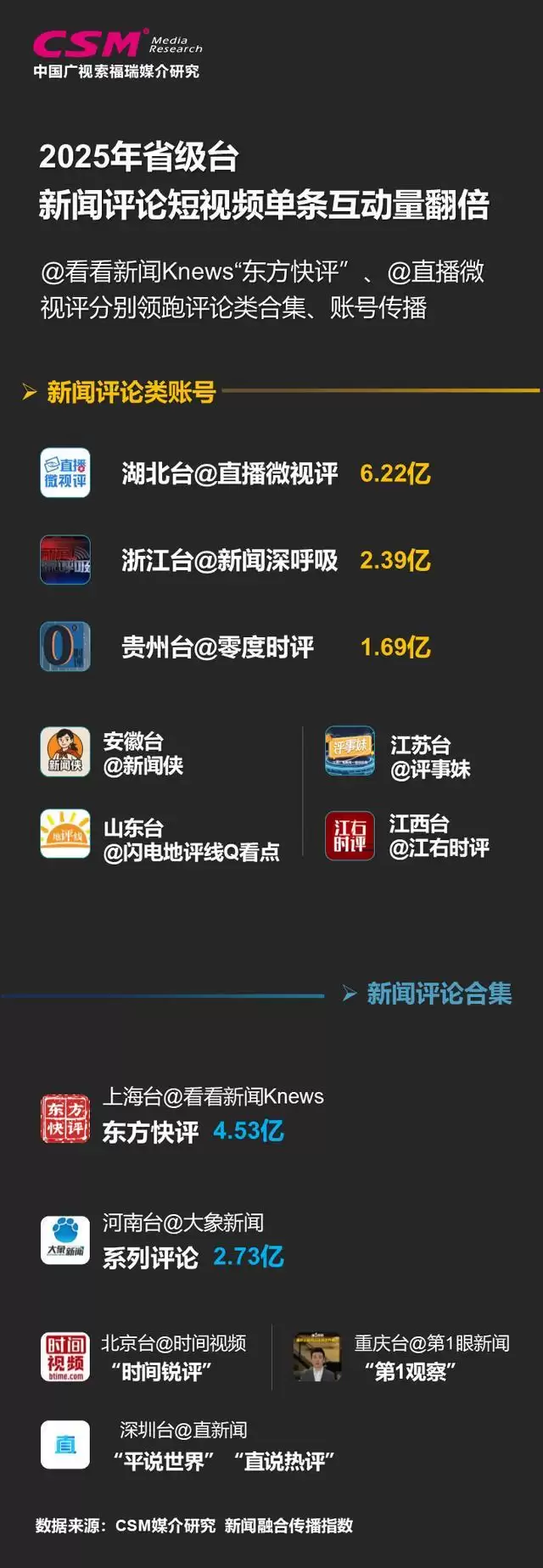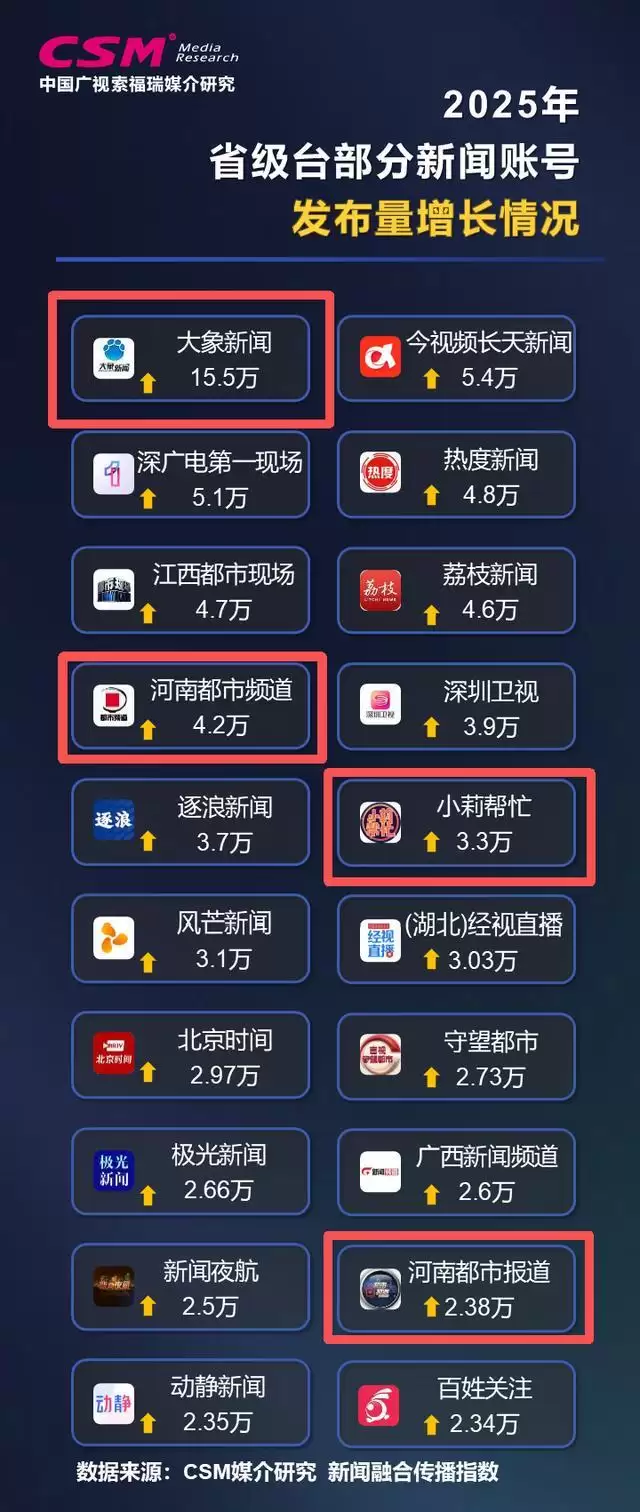 2025年,CSM观察的所有类别省级台账号,传播总量超过1.05万亿。