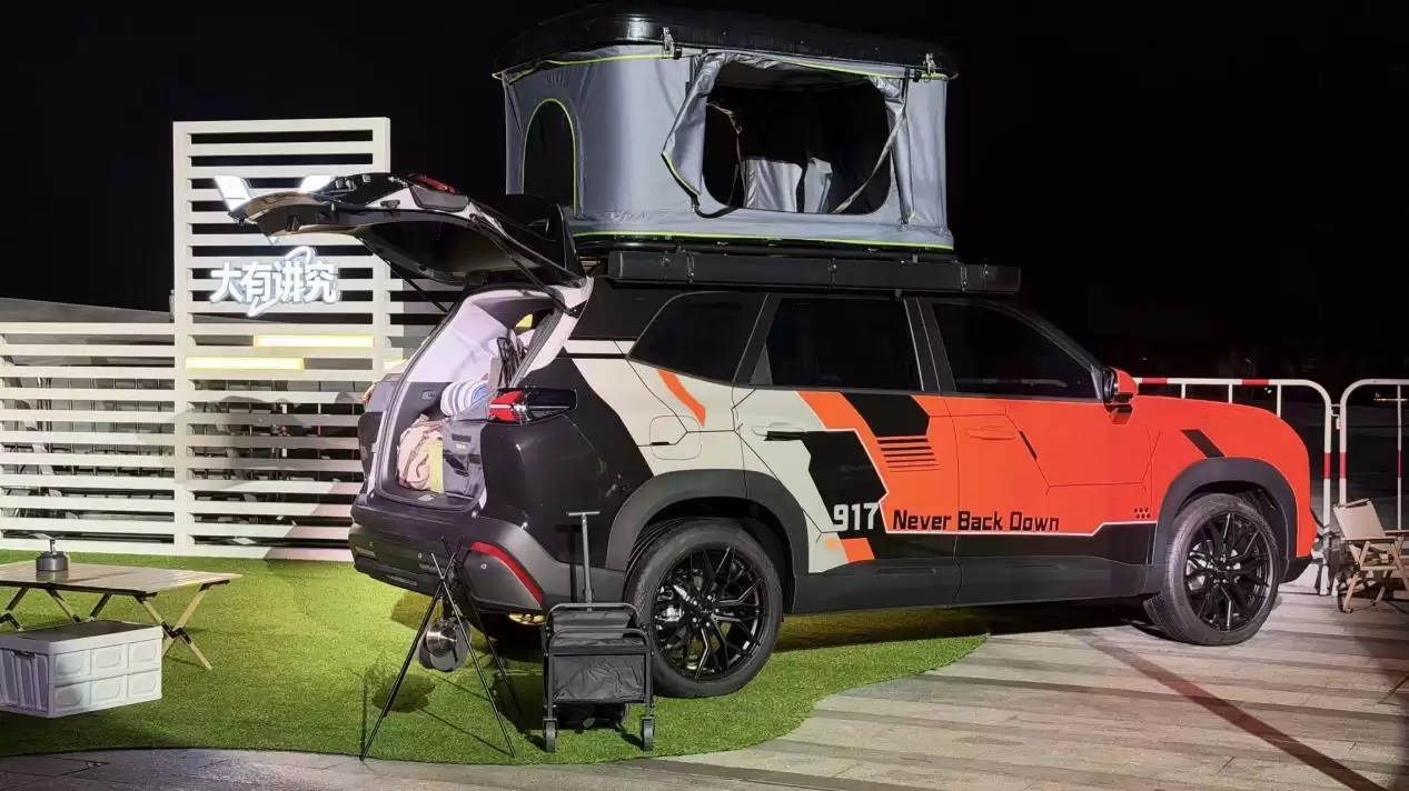 空间是星云560的核心竞争力。新车长4745mm、轴距2810mm,最新宣称其为“6万级以内唯一中型SUV”。通过方盒子结构,车内“得房率”达83%,有效车长3202mm。发布会现场用椰子作为工具演示空间:后排膝部空间超过23cm,头部空间可容纳一个椰子。座舱采用环抱式设计,提供胡桃棕与暖沙棕双内饰主题,座椅使用10mm复合发泡材料,前排支持180°放平,后排靠背可125°调节,放倒后与后备箱形成纯平空间,铺上床垫可容纳1.85米身高者躺平。后备箱常规容积763L,下沉隐藏空间184L,放倒后扩展至约1945L,现场演示曾装下18个20寸行李箱。后排“抠出”32L隐藏式储物格,满足户外工具收纳需求。