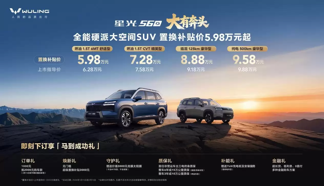 1月15日,五菱星云560正式上市,售价区间为6.28万至9.88万,堪称“价格屠夫”。它同时提供燃油、插混以及纯电三种动力形式,在同级市场中价格优势明显。燃油版起步价不到6万,如此亲民的价格就能拥有一台大尺寸SUV,让合资小型SUV瞬间失色。插混版起步价8万多,与银河L7等车型相比,在价格和续航方面都更具竞争力。