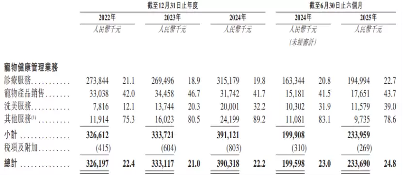 财务数据显示,从2024年至2025年上半年,瑞派宠物医院持续经营业务收入分别为14.55亿元、15.85亿元、17.58亿元及9.43亿元,净利润分别为-0.62亿元、-2.51亿元、-0.59亿元及0.16亿元;经调整净利润分别为0.55亿元、-1.21亿元、0.7亿元及0.73亿元。报告期内,公司毛利率呈现波动趋势,分别为22.4%、21%、22.2%及24.8%。截至2025年12月15日,瑞派宠物医院旗下417家在营医院通过收购方式取得,占比达到77.5%。