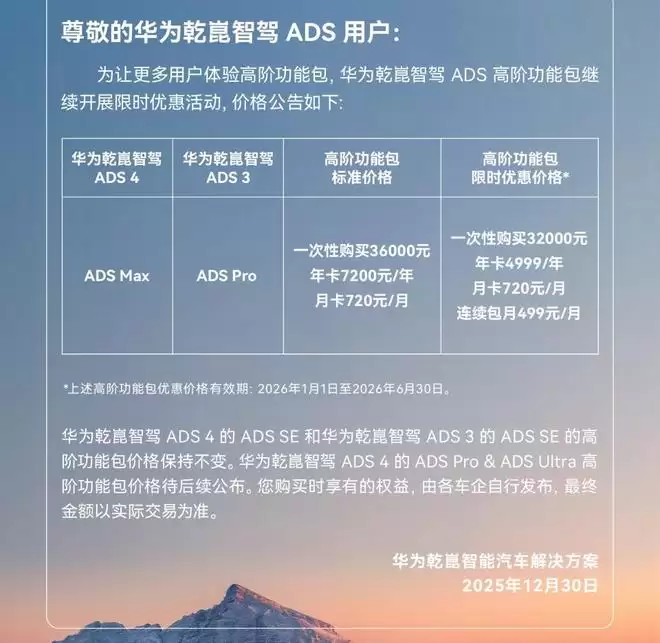 华为乾崑ADS:原价3.6万元,限时优惠仅需3.2万元,直接打对折。