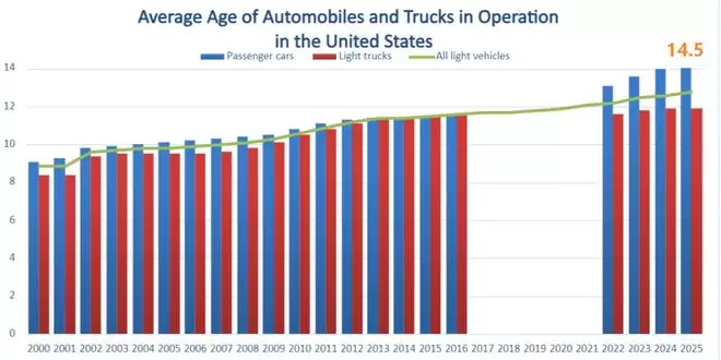 一笔简单的账足以说明:在美国市场,FSD买断价为8000美元。若按每月99美元订阅,用户持续使用约6.73年,总支出即与买断价持平;按年费999美元计算,则需约8.01年。而根据美国交通部2025年数据,乘用车平均使用年限高达14.5年。
