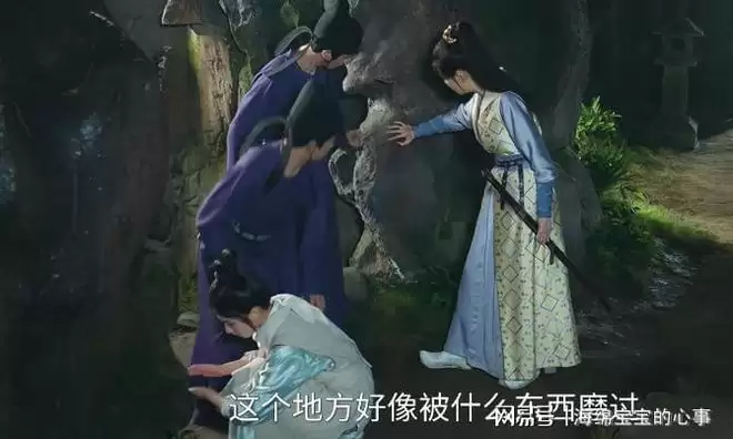 男主萧瑾瑜(王子奇饰演)在湖边的一处假山附近找到了打斗痕迹,并且确认死者是侍卫伍两。