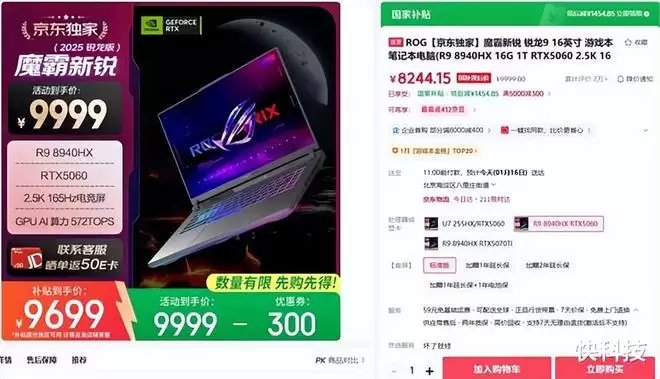 比如华硕的天选6 Pro,高端高颜值笔记本的优秀代表作,其锐龙版本开启了新一轮优惠,叠加国补后,锐龙9 8940HX处理器、RTX 5070 Laptop GPU独立显卡、16GB、1TB版本到手价只需7649元,可以说非常适合大学生入手。
