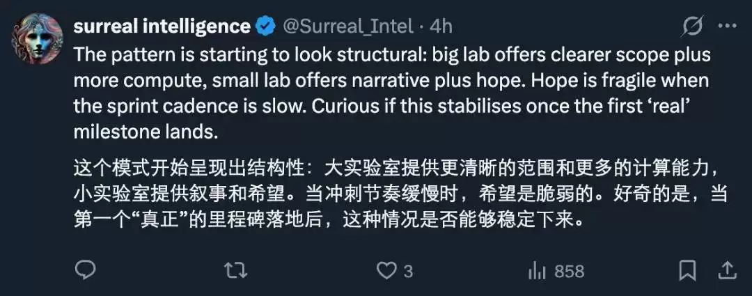 但显然,这样的成果是承载不起顶尖人才当时从大厂出走时所怀抱的技术理想的。因为除此之外,他们没有旗舰模型,没有明确的商业平台,似乎也没有一份与投资规模相匹配的公开路线图。