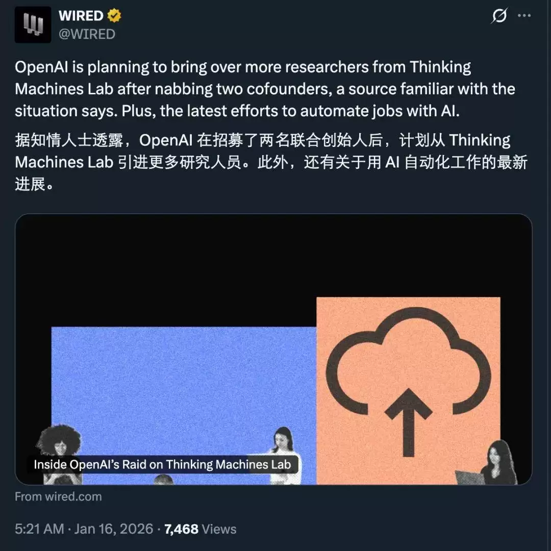 多家媒体将此事描述为“OpenAI对Thinking Machines Lab的人才突袭(raid)”。《连线》杂志报道,这次挖人行动已在OpenAI内部筹备数周。