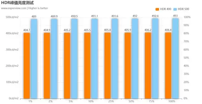 MPG 272QRF X36支持HDR 10,属于是目前一个比较基础的HDR开放标准。在Windows中启用HDR后,你可以在显示器菜单中设置峰值HDR亮度。考虑到WLED IPS显示器的特性,我猜你应该不会对这个非常一致的结果感到太惊讶。