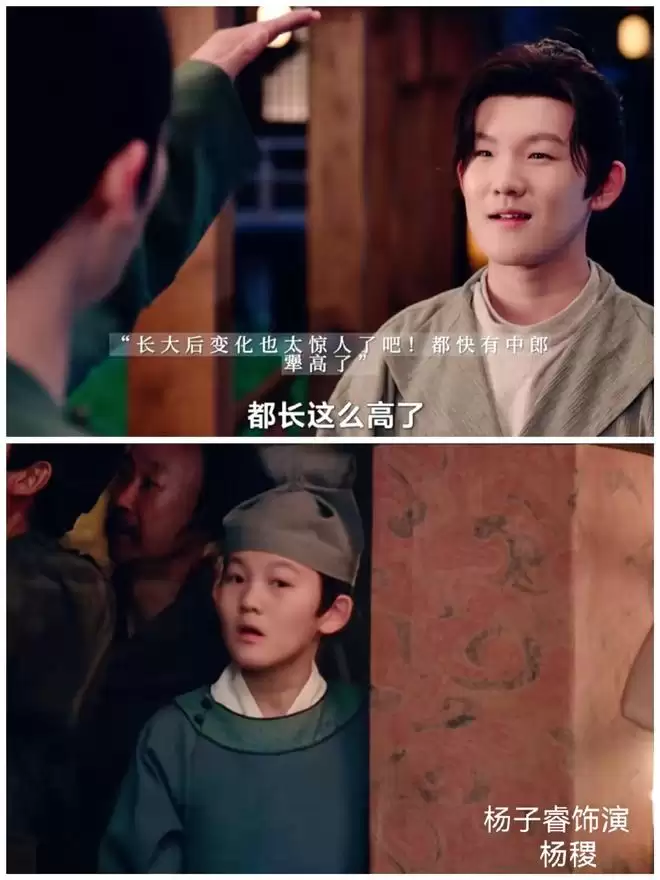 之前在《唐朝诡事录之长安》里,杨子睿扮演的杨稷成了探案小分队新成员,做个暗探,他对卢凌风和喜君也很忠诚。他比起第1部长高了好多,站在卢凌风身边都看起来很高。但不如小时候可爱了,眼睛显得很小,对比小时候,完全可以说长残了。