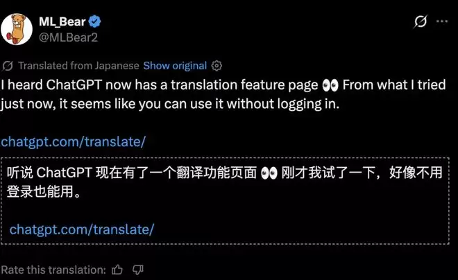 OpenAI 几乎没有任何公开宣传,目前都不知道ChatGPT Translate具体何时上线。