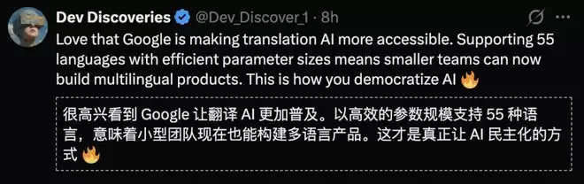 这对开发者来说无疑是巨大利好:只需不到一半的参数量,就能实现高度保真(high-fidelity)的翻译质量。