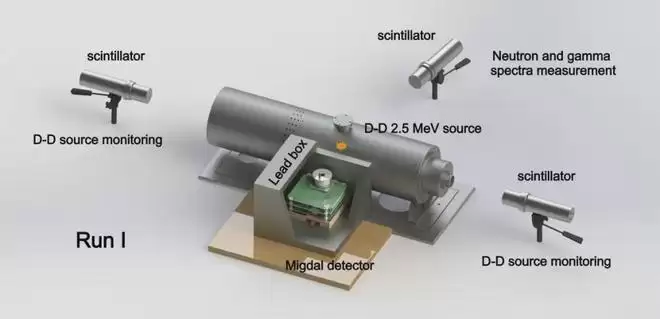 实验中,团队使用紧凑型氘-氘(D-D)中子发生器产生能量为 2.5 MeV 的中子束,轰击探测器内填充的 40% 氦气与 60% 二甲醚(DME)混合气体。