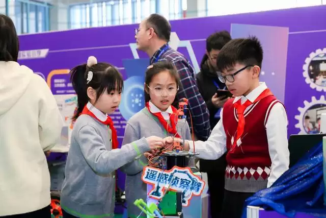 梅陇实验中学学生章颢铭目睹轮椅使用者出行不便,历时两年,研发出可通过头部动作控制的“首动智椅”,AI让他感受到“技术也可以有温度”;曹杨实验小学青年教师张嘉宜借助AI生成的文物影像,将历史的厚重转化为学生可见可感的共情体验;江宁学校老教师顾凤主动拥抱AI,将其贯穿于“海水淡化”跨学科项目的设计、建模与优化全流程,引导学生辩证看待AI的误差……