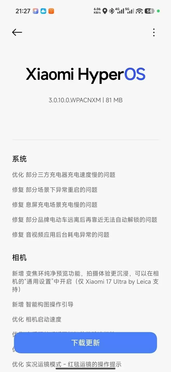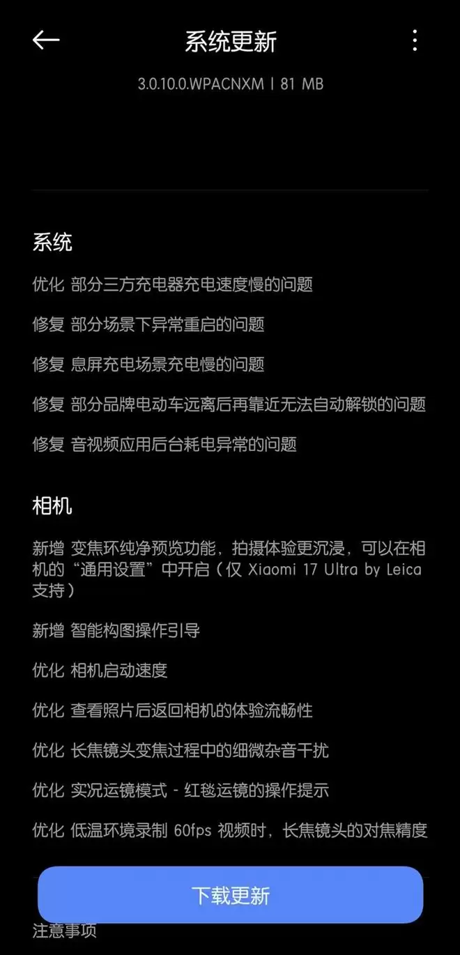 在这种情况下,许多新机发布之后都会收到很多新版本的推送,其中就包括小米17 Ultra,近期就迎来了新版本的升级。