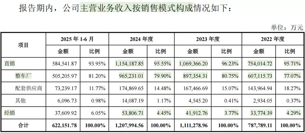 2022至2024年度,公司营业收入分别为82.15亿元、115.49亿元和125.23亿元。其中,2023年和2024年的营收同比分别增长41%和8%。2025年上半年,公司实现营业收入65.57亿元,其增长势头有所放缓。这主要源于汽车行业竞争加剧,主机厂之间持续的价格战导致“以价换量”成为行业常态,这种压力向上游供应链传导,进一步挤压了供应商的利润空间。尤其在当前激烈的市场竞争环境下,整车厂通常会向供应商提出年度降价及销售折让的要求。报告期内,公司产品的年度降价比率介于2%至16%之间。
