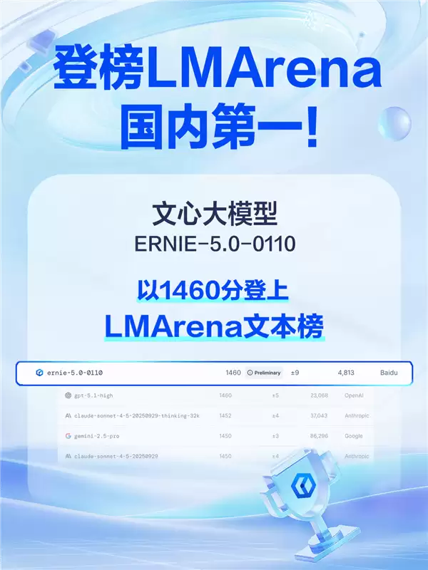 国际权威评测机构LMArena最新发布的榜单显示,文心大模型ERNIE 5.0 0110版以1460分跻身文本生成领域全球前十,位列国内第一。在数学推理专项测评中,该模型更以全球第二的成绩展现其多模态能力优势。值得注意的是,此前发布的文心大模型5.0 Preview版本已在同一榜单中取得全球并列第二的佳绩。